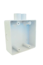 A PVC wall box with a spout is a type of electrical junction box specifically designed for surface-mounted wiring. It is made from durable polyvinyl chloride and features built-in openings, or "spouts," that allow electrical conduit to connect to the box.